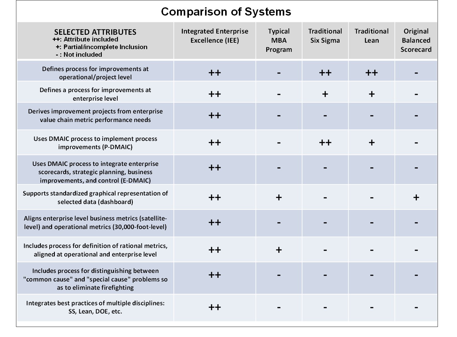 Comparison of Integrated Enterprise Excellence Business Management to other Systems