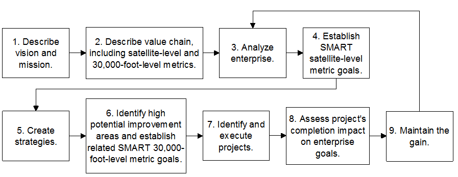 Every business is different. Based on the options taken, realistic targets should be established for areas of the business that have the most whole-enterprise benefits. The efforts to improve the business performance metrics should involve process improvement efforts that are long lasting to the business measurement.