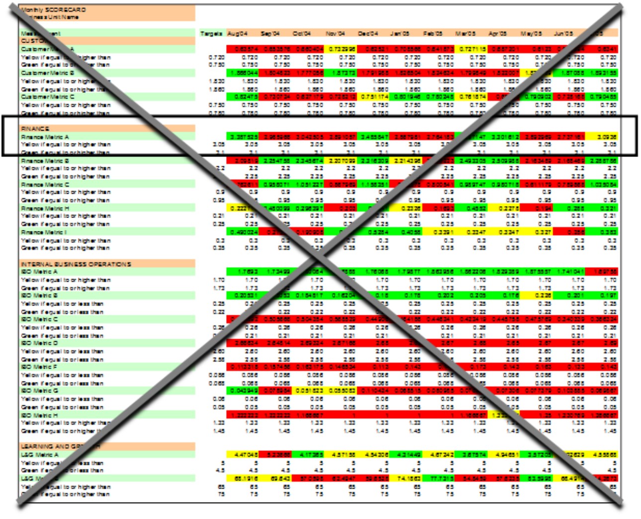 Performance Measurement System Needs, Red-yellow-green scorecards