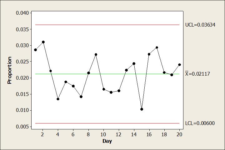 Control Limits for p chart using an individuals chart