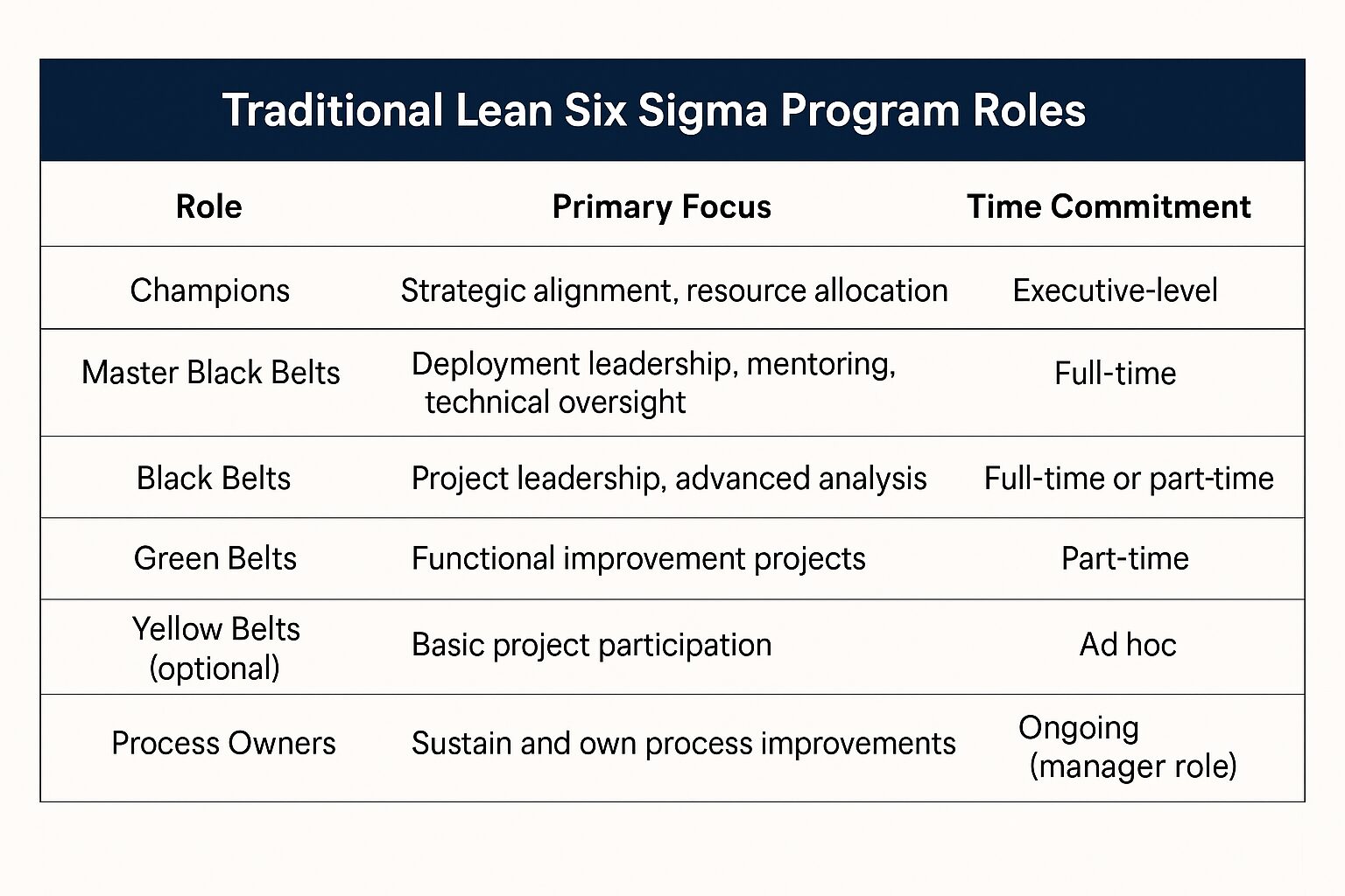 lean six sigma continuous improvement Roles